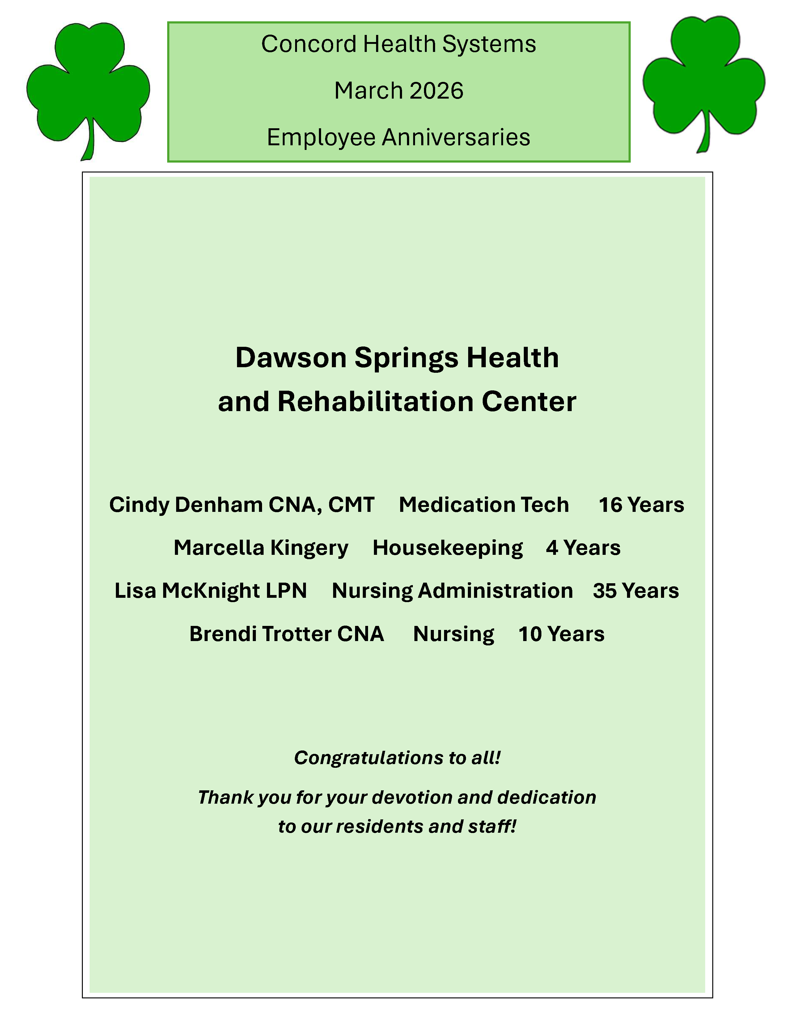 Congratulations to our dedicated staff!