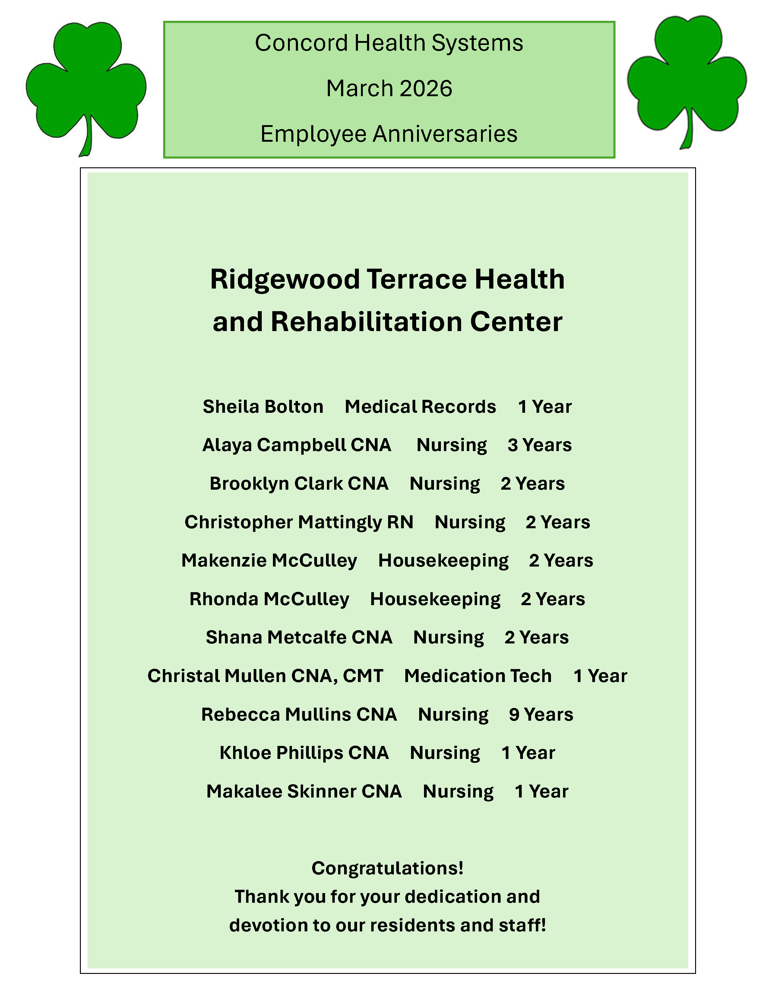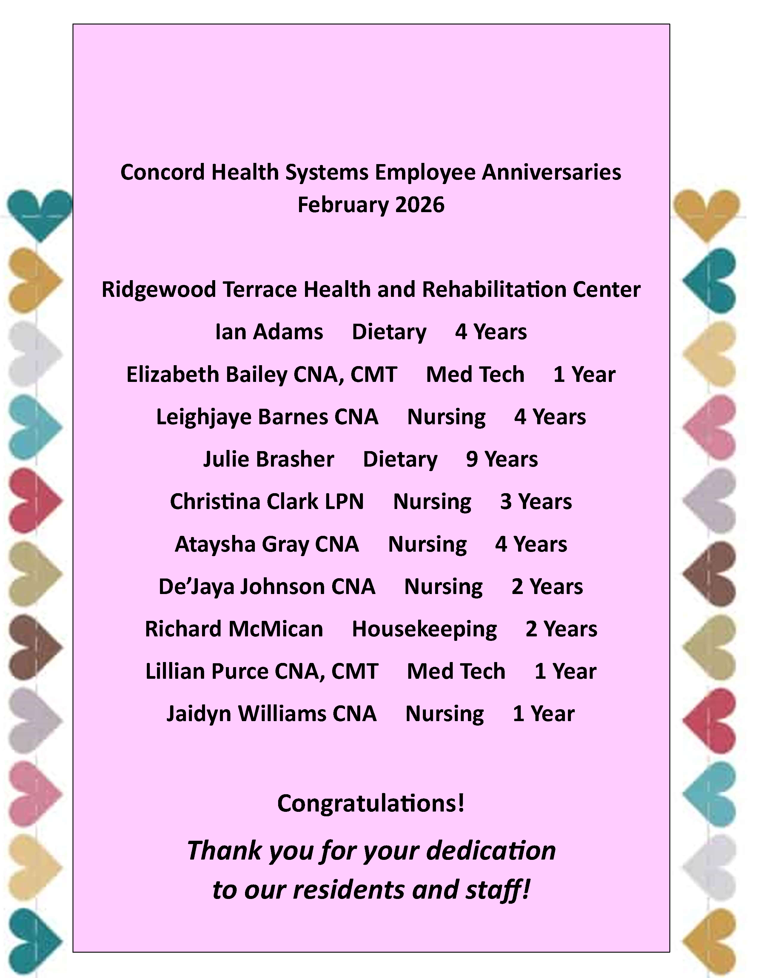 Congratulations to our dedicated staff!