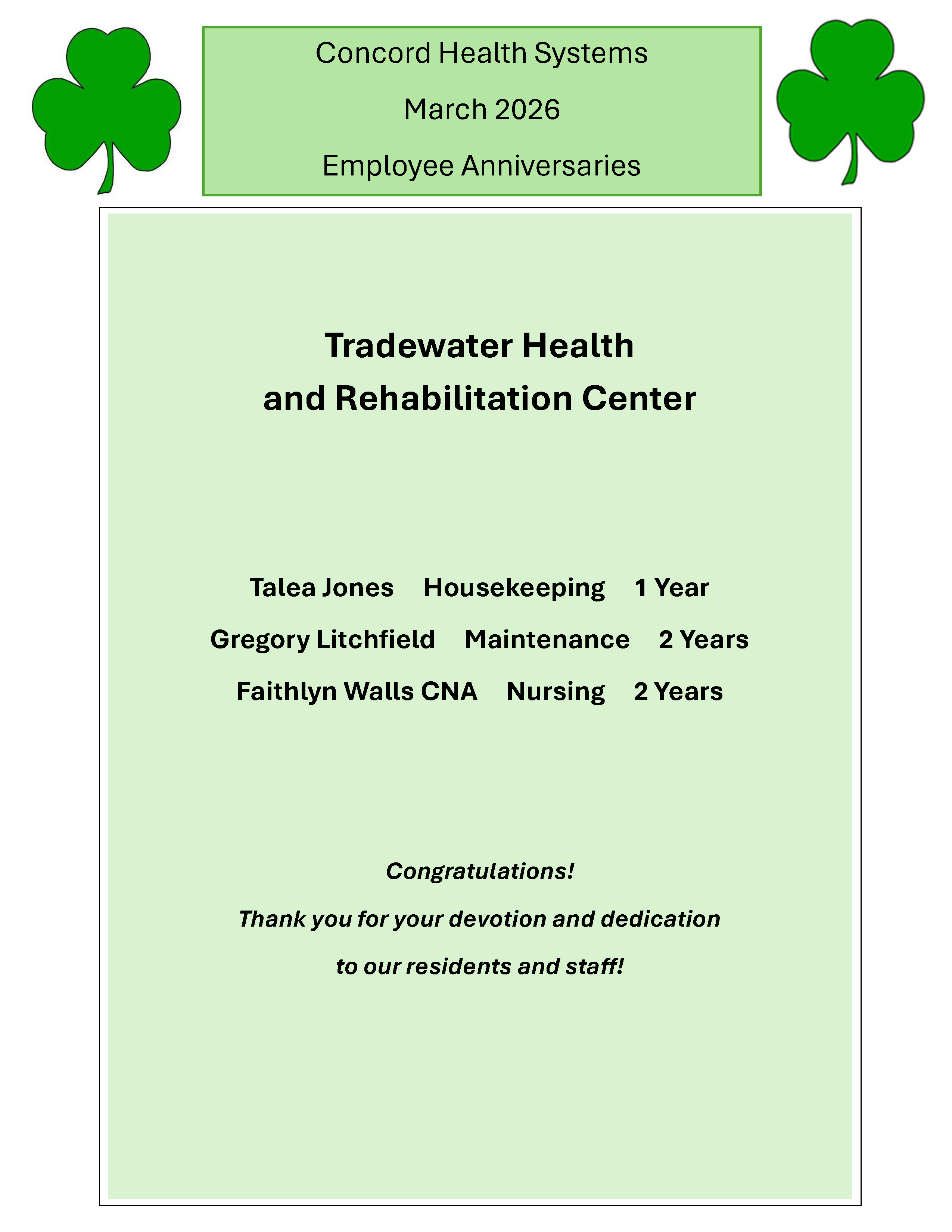 Congratulations to our dedicated staff!