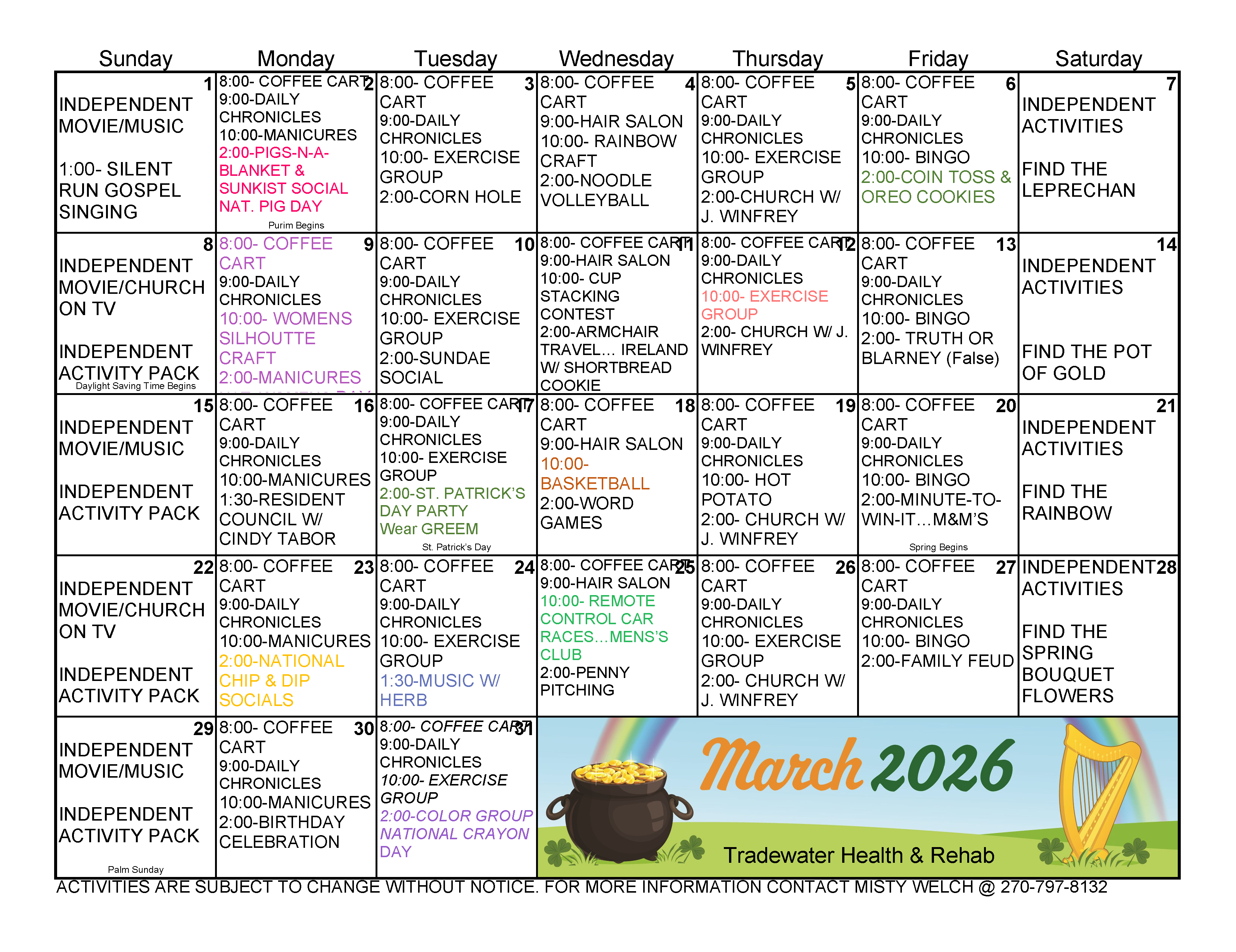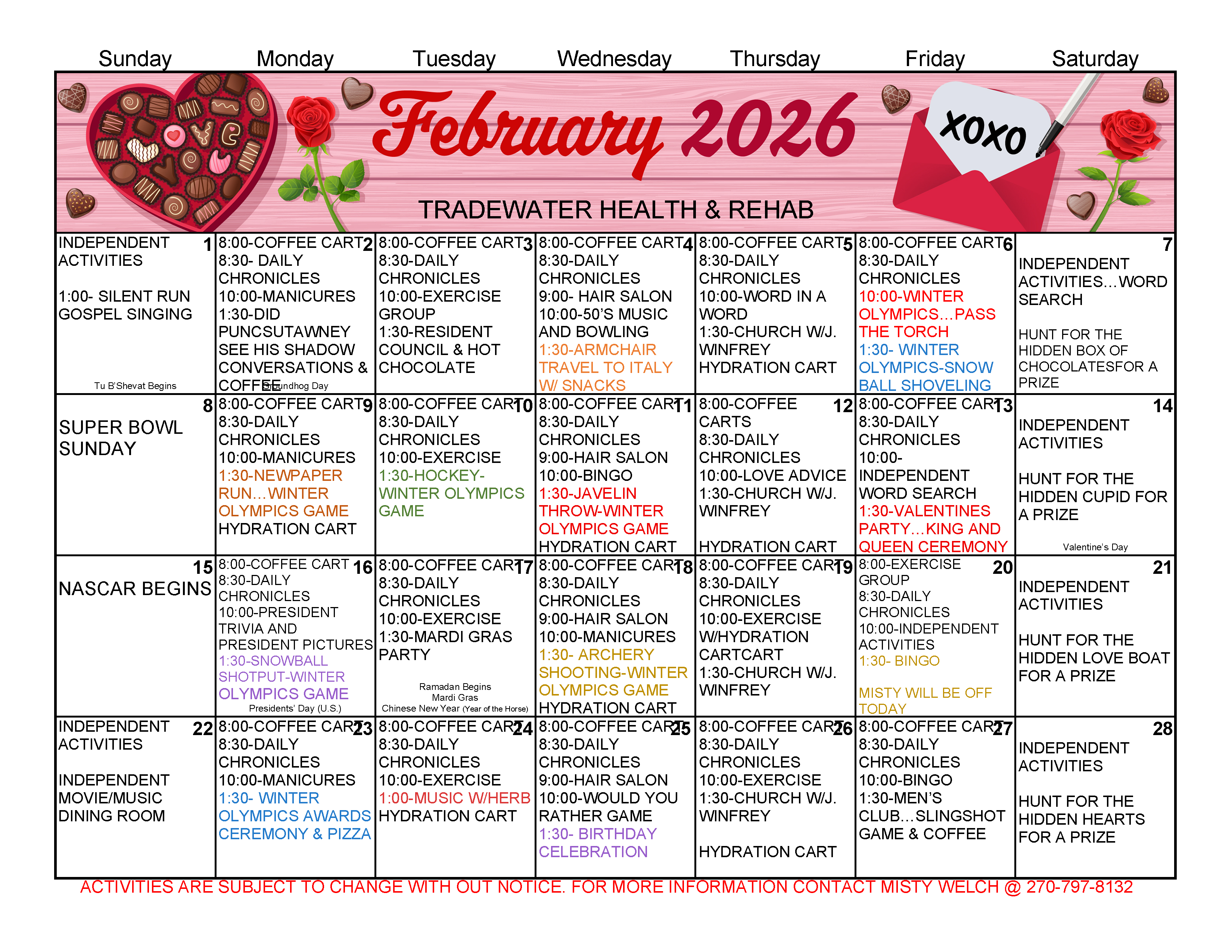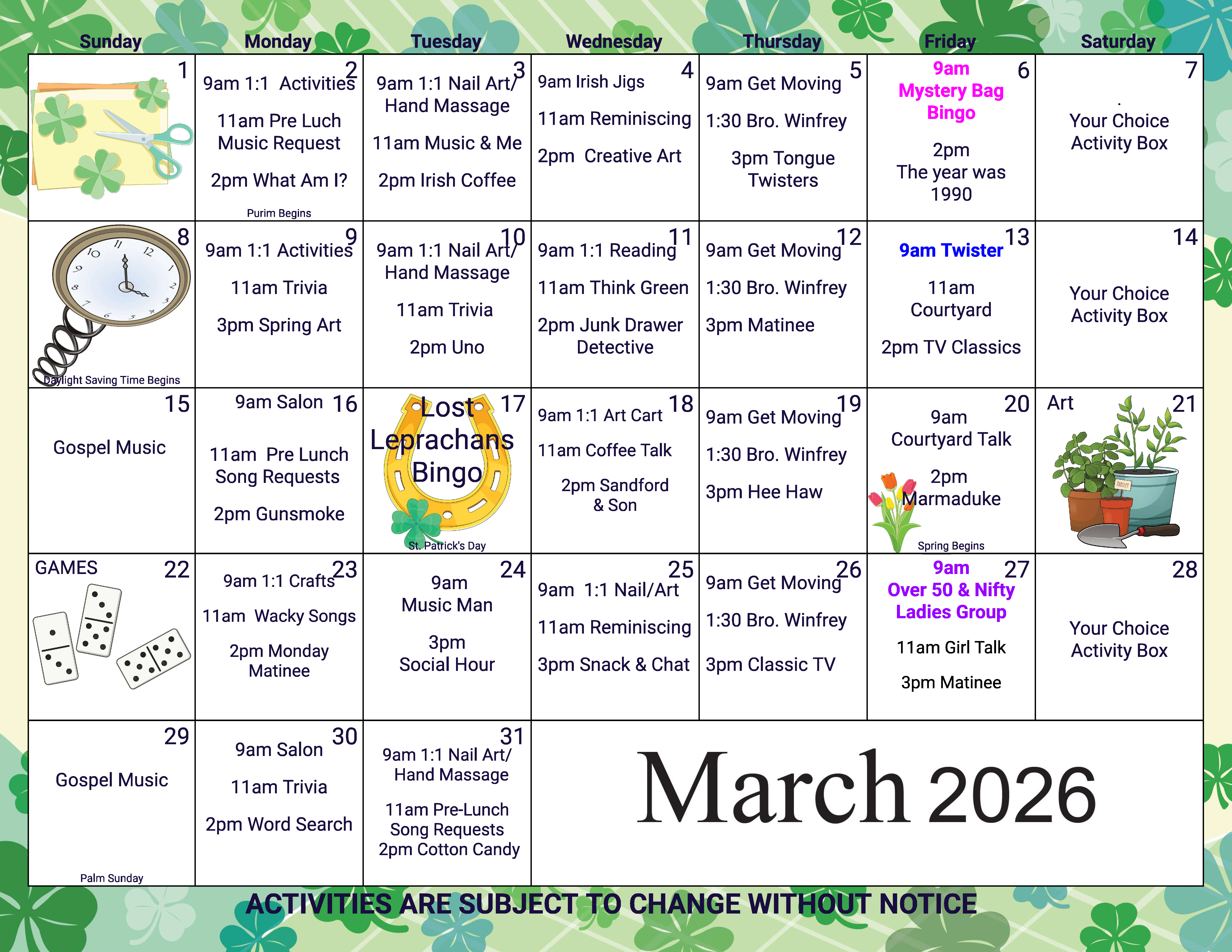 Activity Calendars Click on a link below to launch a printable (landscape mode) activity calendar in a new window/tab. .