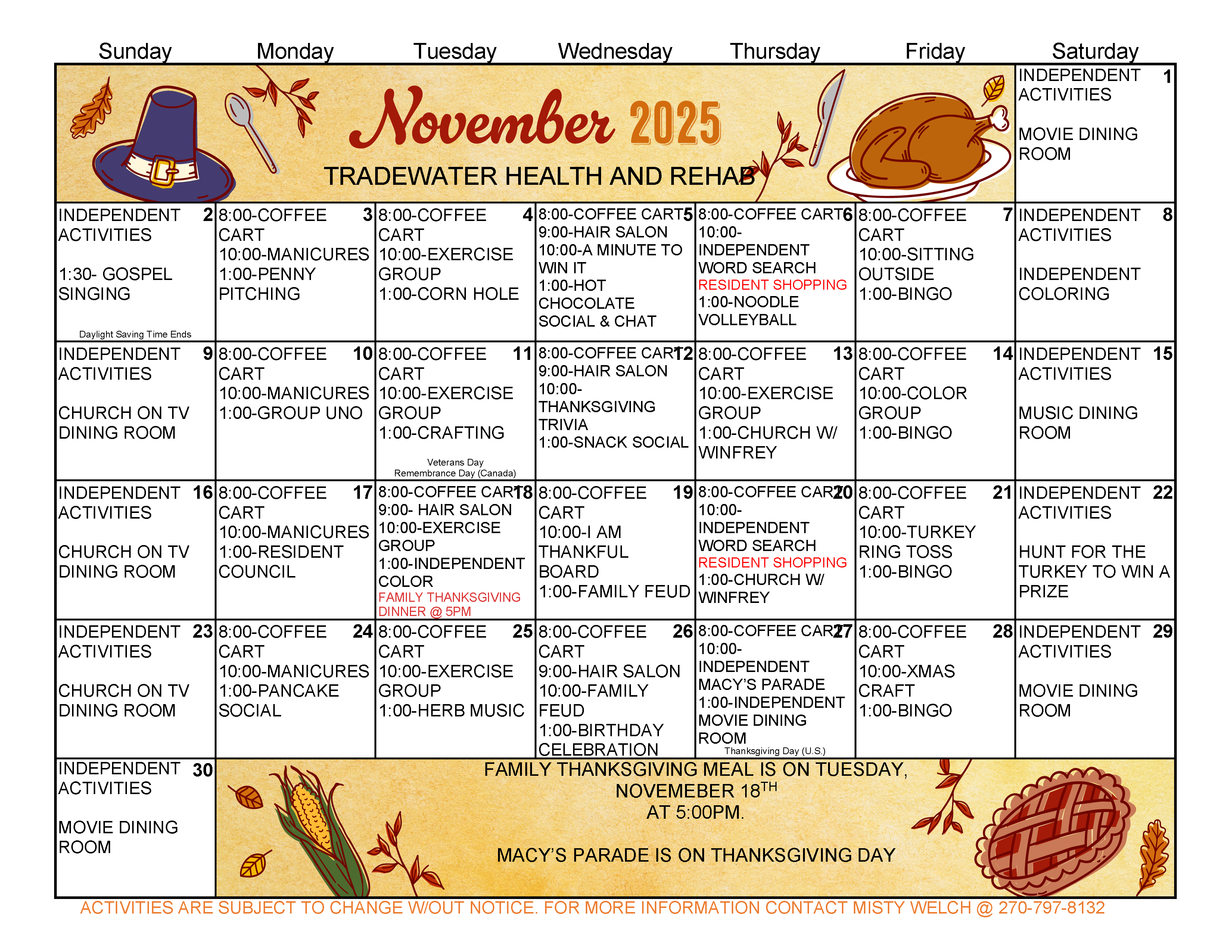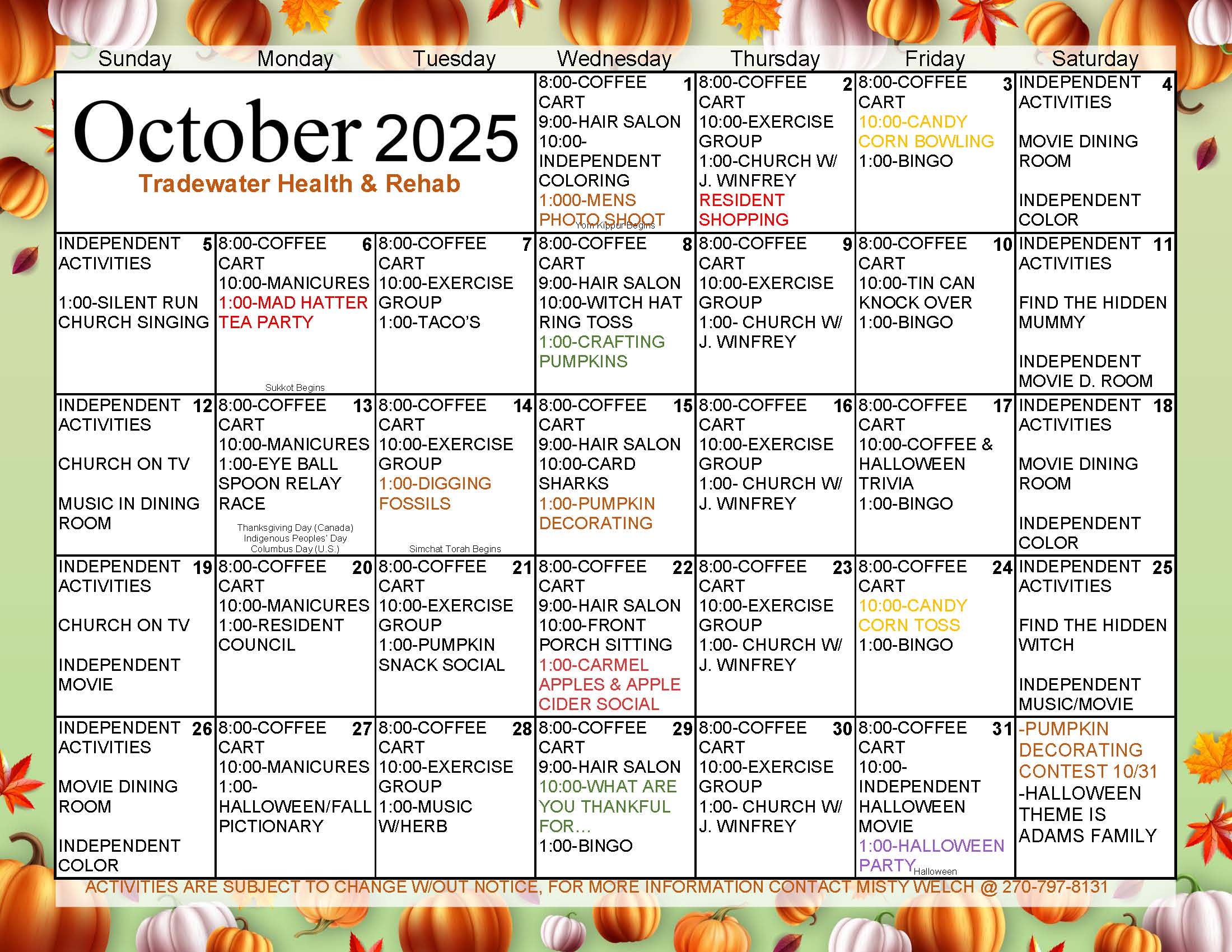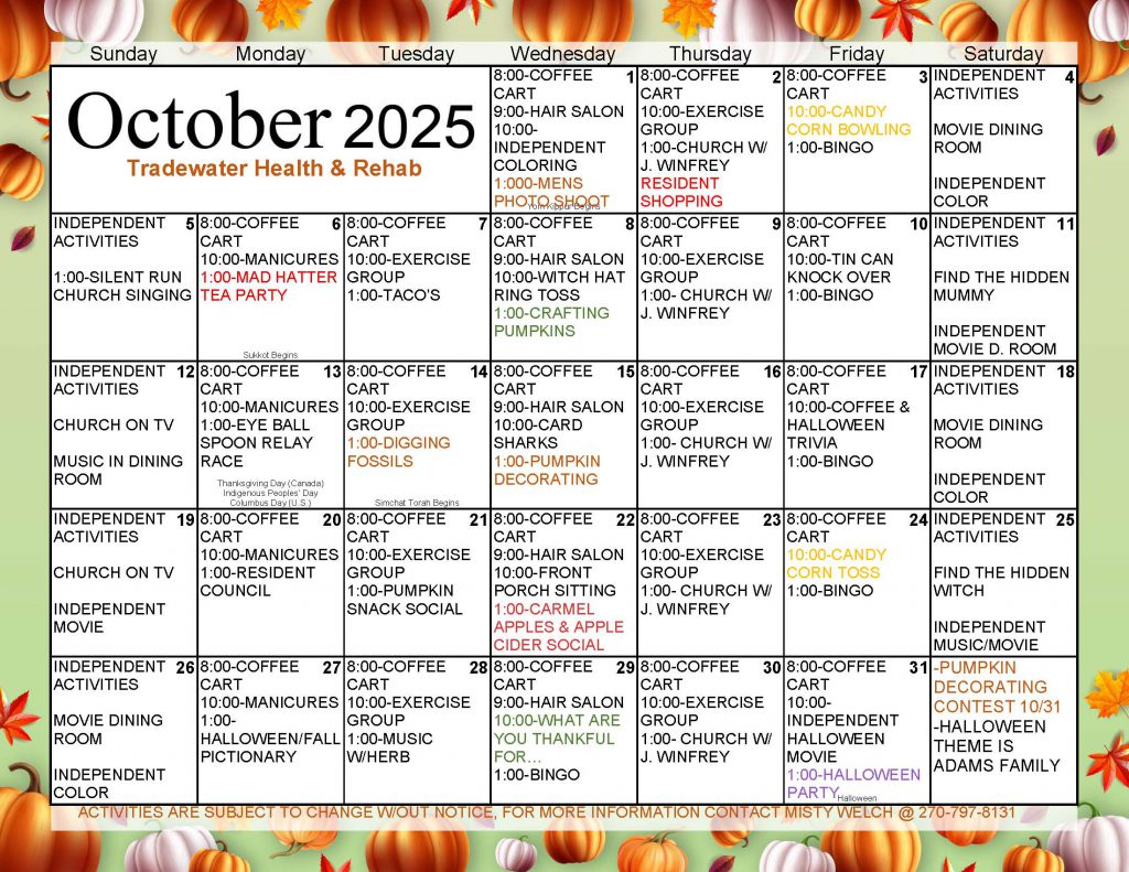 Activity Calendars Click on a link below to launch a printable (landscape mode) activity calendar in a new window/tab. .